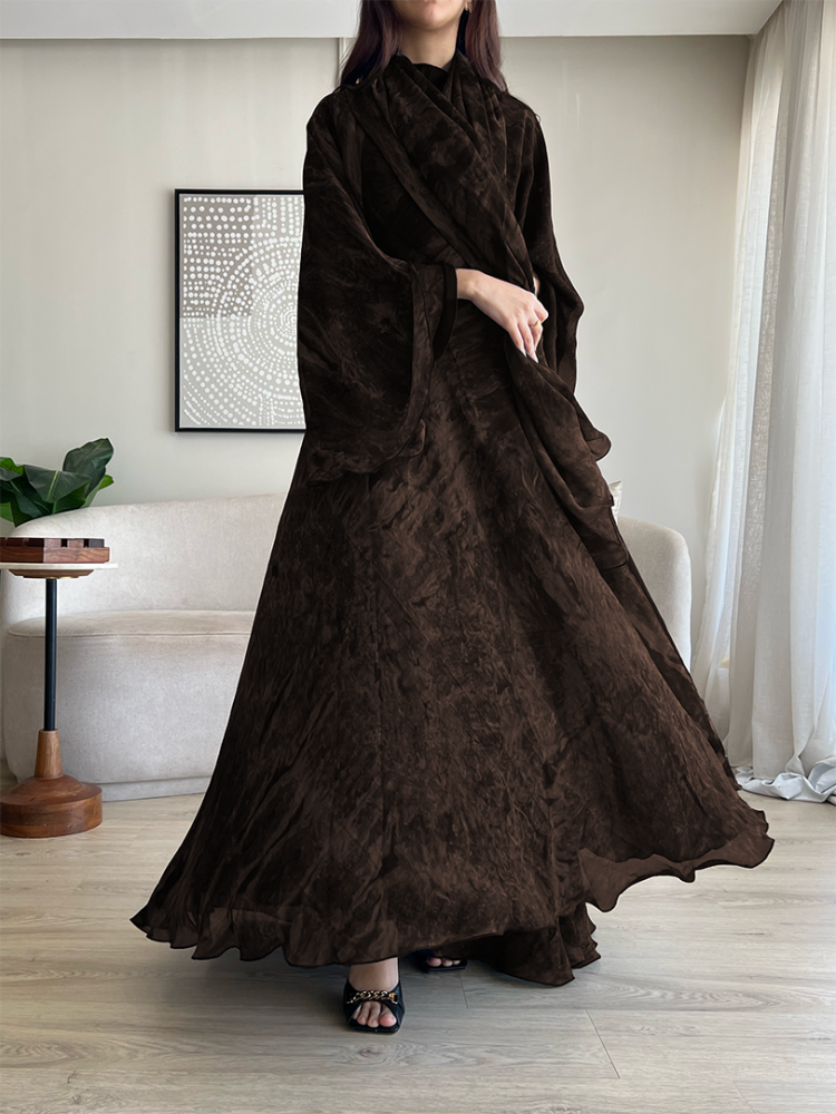 عباية شيفون مطبوع بتموج مميز ✨ طبقتين شيفون