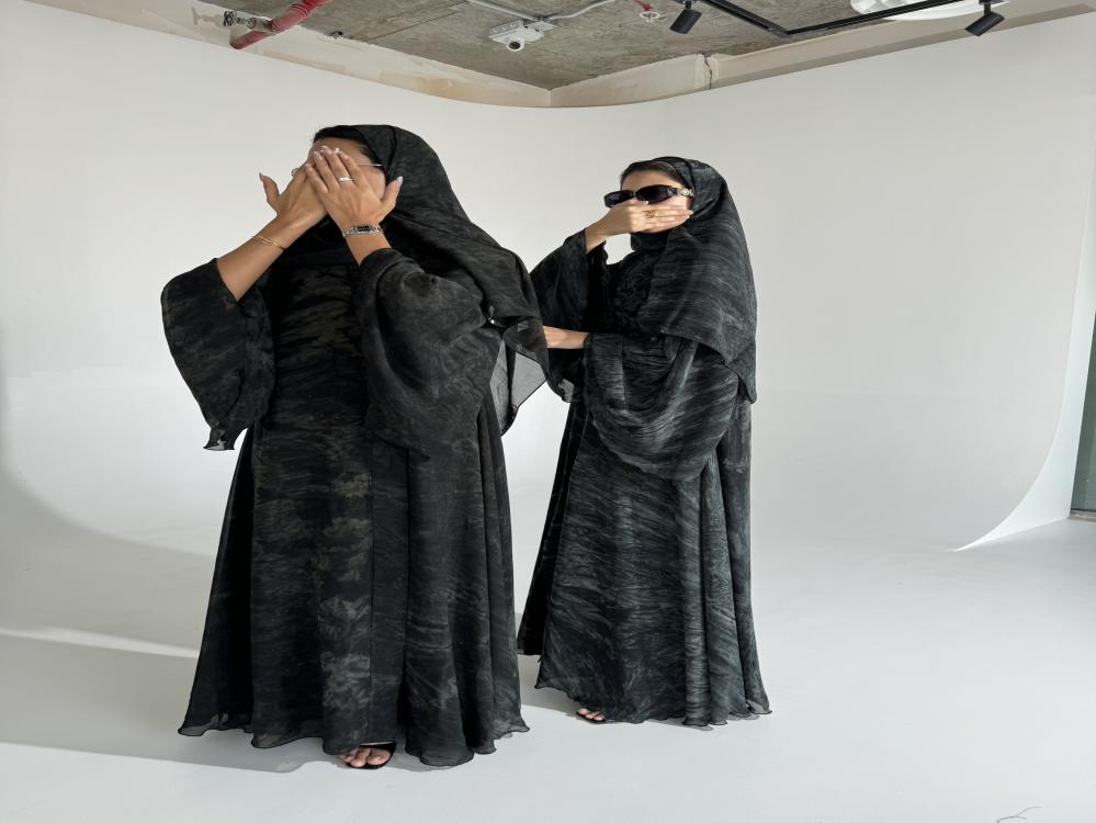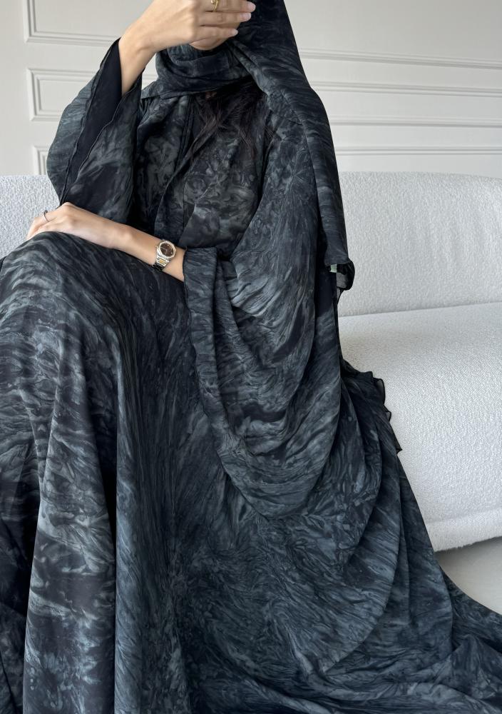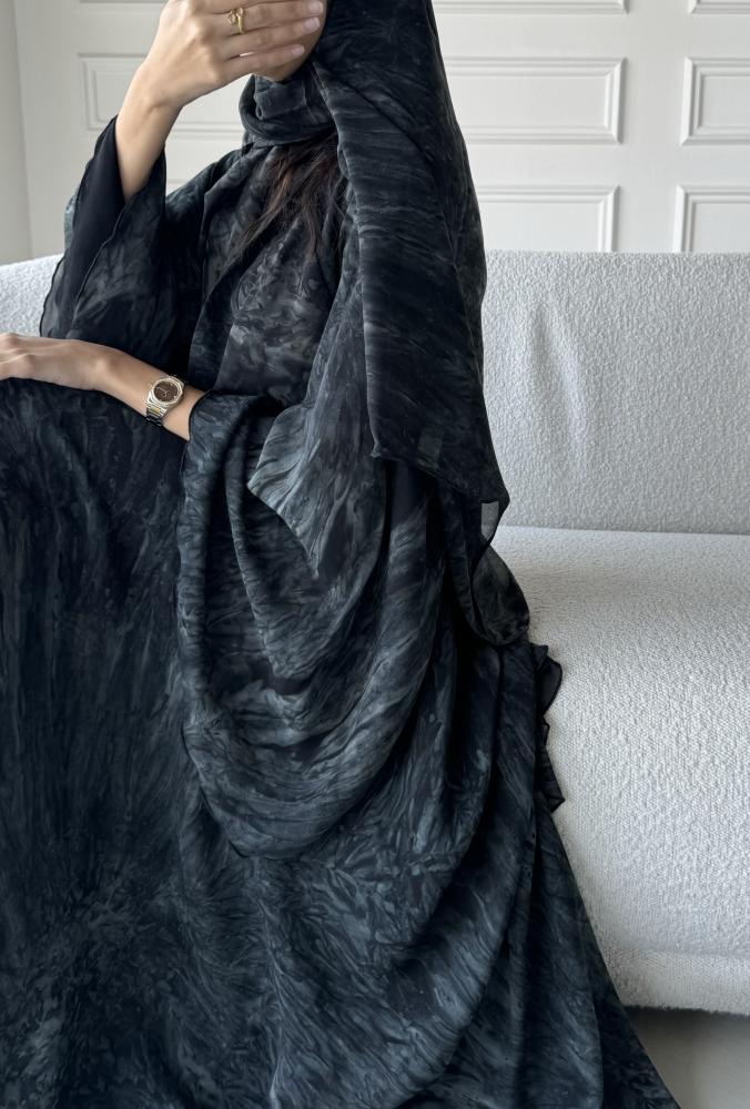 عباية شيفون مطبوع بتموج مميز ( اوشن ) ✨ طبقتين شيفون