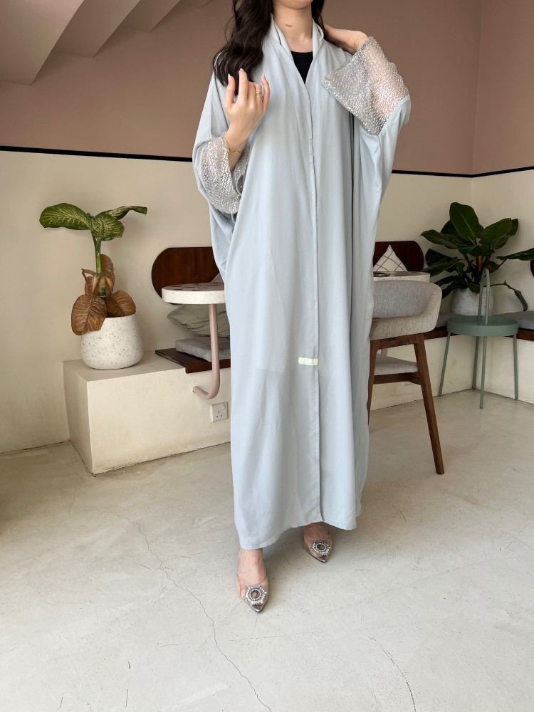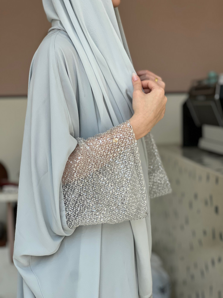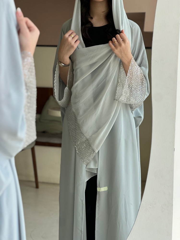عباية جرجيك خفيفة صيفية مع كم بتطريز خاص باللون الفضي.——————————————-يتم التنفيذ من 7-15 يوميتم الشحن من 3-5 ايام
