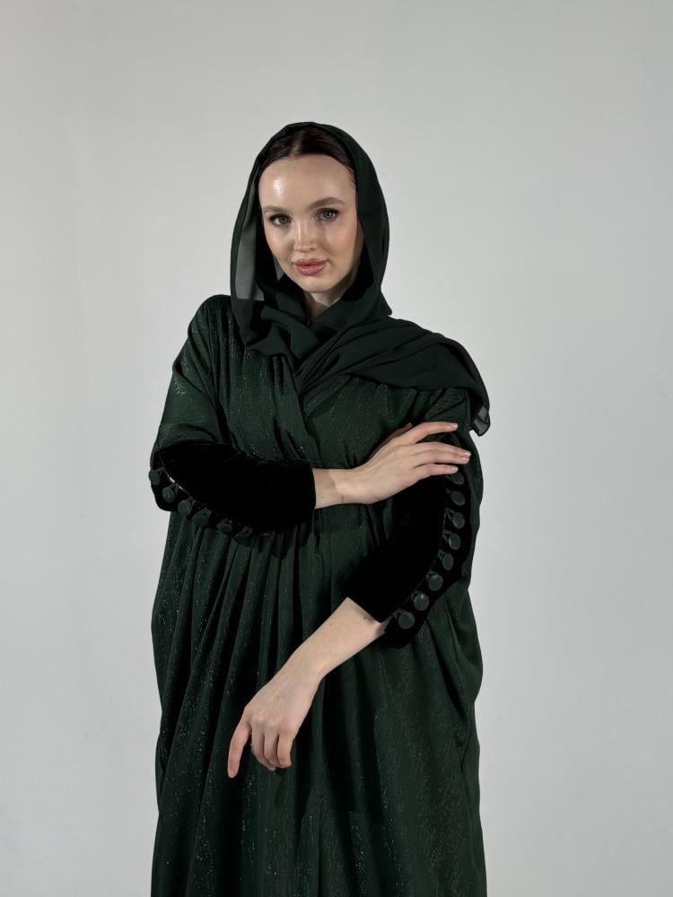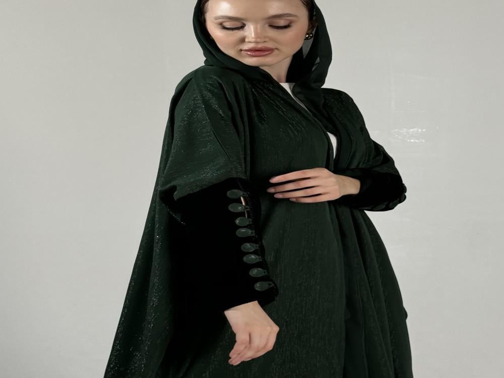 Fabric type: Very light two-layer chiffon abaya decorated with reeds.